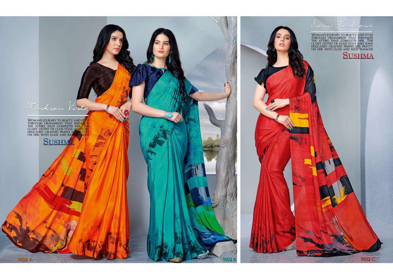 Looking for Buy Crystal Sushma Online Wholesale Designer Crape Saree Full Catalouge at Best Price? Buy Now Buy Crystal Sushma Online Wholesale Designer Crape Saree at Wholesale Rate of Rs 11340 with Total 18 from authroized dealer and supplier of Devyani Fashion Brand. Cost of Each piece is just only Rs 630 which is very low and affordable price to resale the product in your retail store. Devyanitextileexports is Surat based Wholesale Supplier & Dealer of Devyani Fashion Brand. Click on Brand name to Know more about BELLIZA Brand's products.