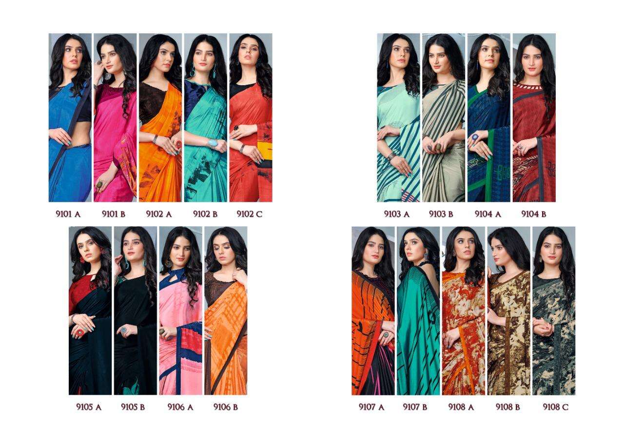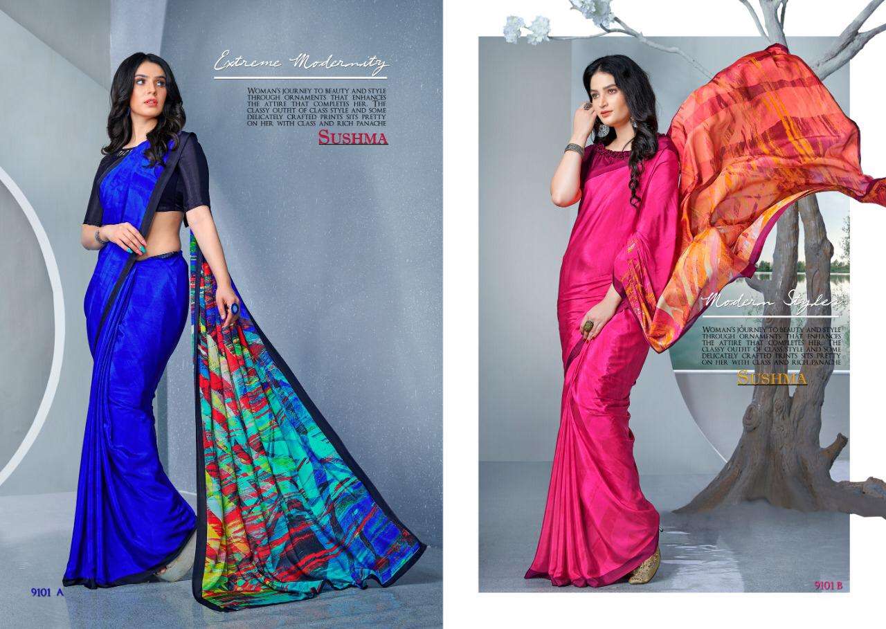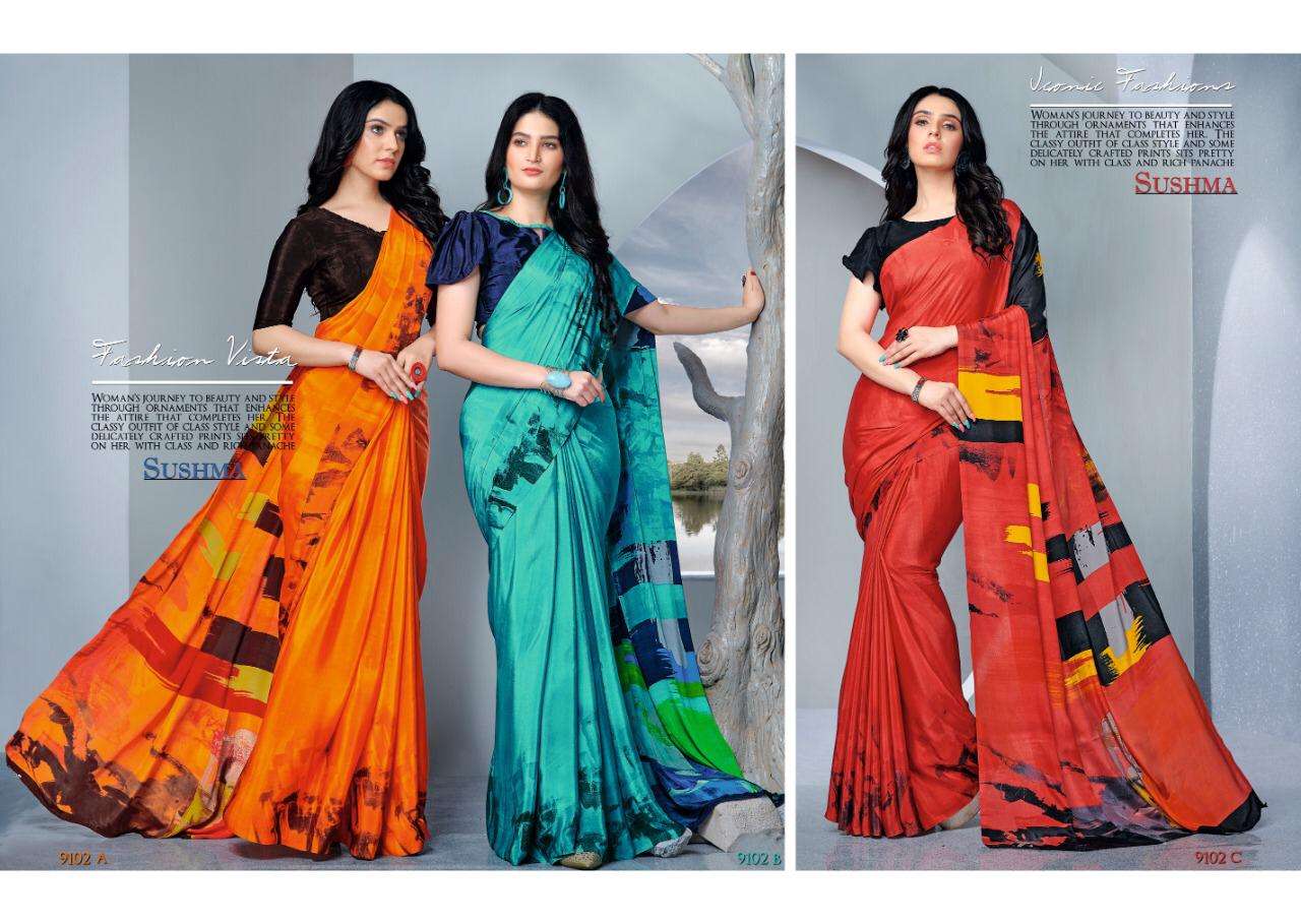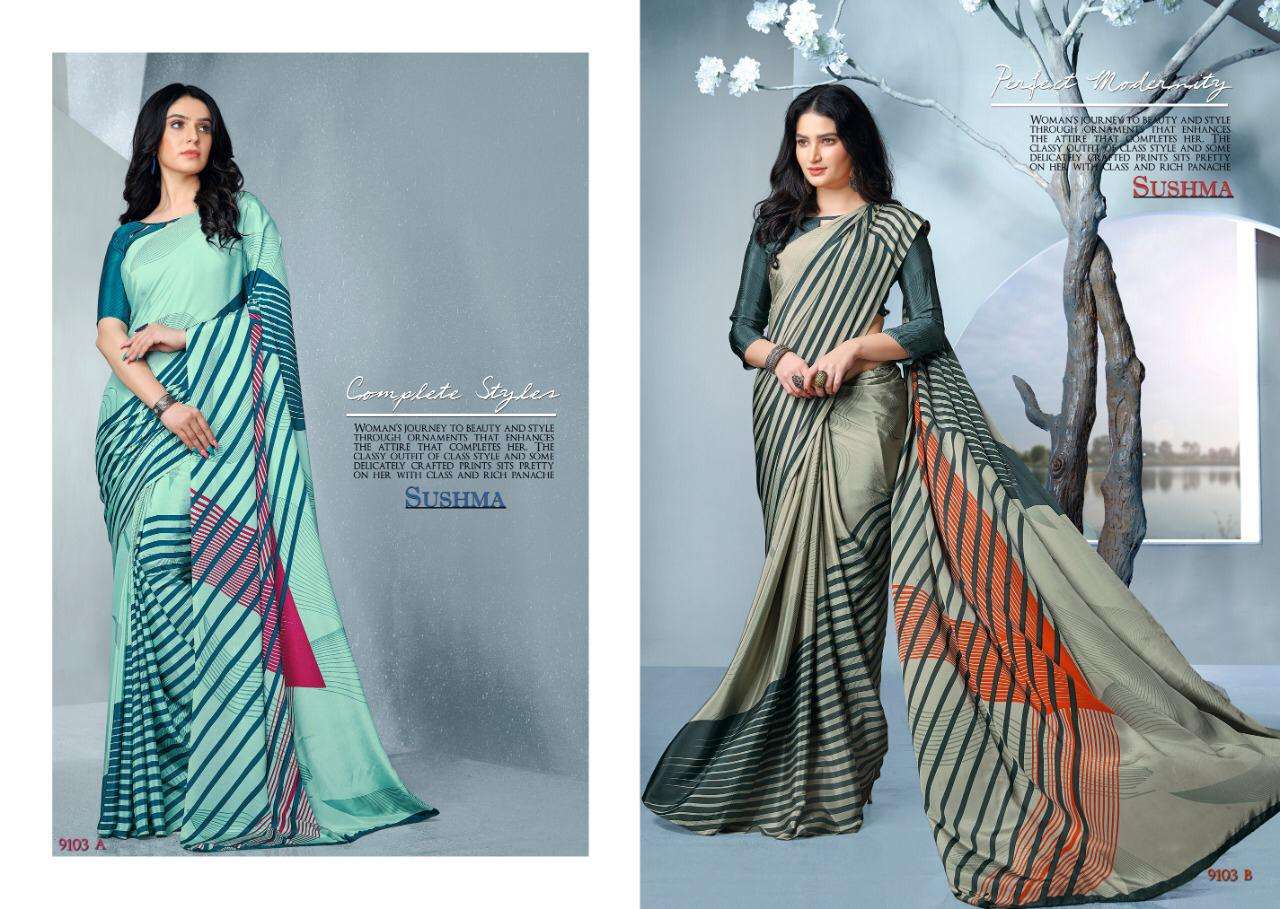 Looking for Buy Sushma Fashion Fab Online Wholesale Crape Saree Full Catalouge at Best Price? Buy Now Buy Sushma Fashion Fab Online Wholesale Crape Saree at Wholesale Rate of Rs 10620 with Total 18 from authroized dealer and supplier of Devyani Fashion Brand. Cost of Each piece is just only Rs 590 which is very low and affordable price to resale the product in your retail store. Devyanitextileexports is Surat based Wholesale Supplier & Dealer of Devyani Fashion Brand. Click on Brand name to Know more about BELLIZA Brand's products.